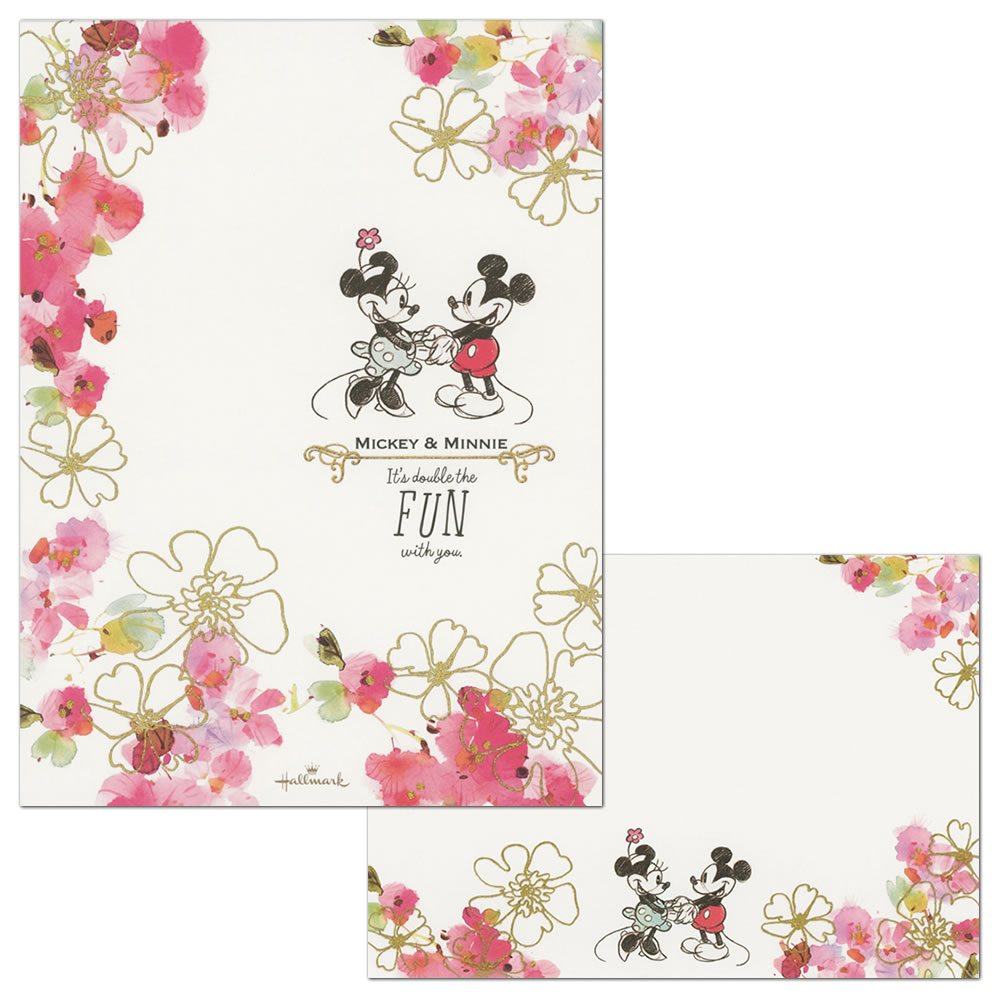 ミッキー&ミニーがプリントされた花柄ラメ加工のレターセット。