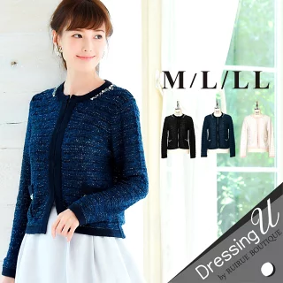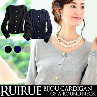といった、光沢感があって華やかな素材の『カーディガン』を選ぶことがポイントです。