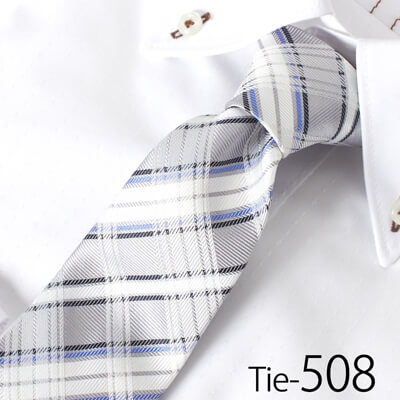 など、『チェックのラインが目立つデザイン』のシルバーネクタイはカジュアル感が強め。