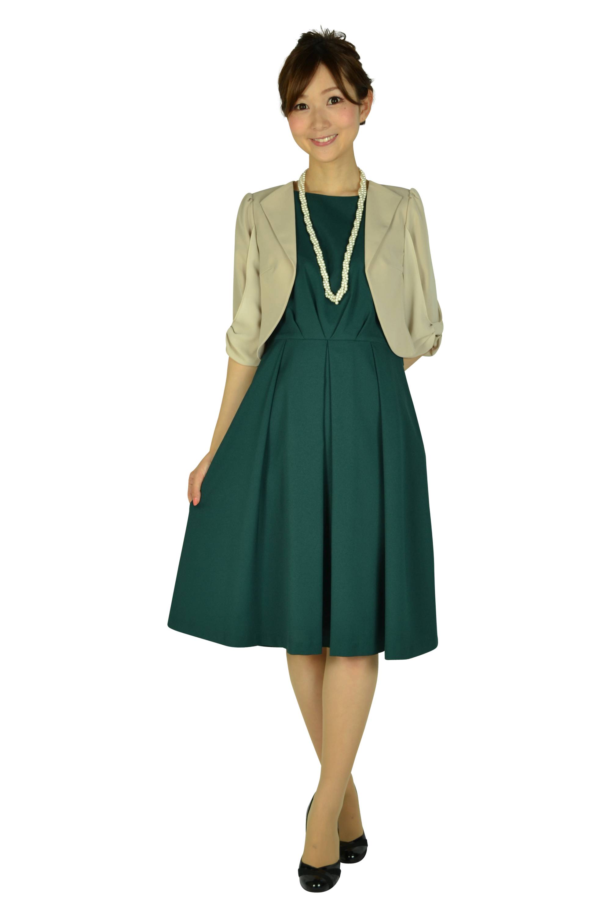 レトロクラシカルが特徴のシンプルなダークグリーンドレス。