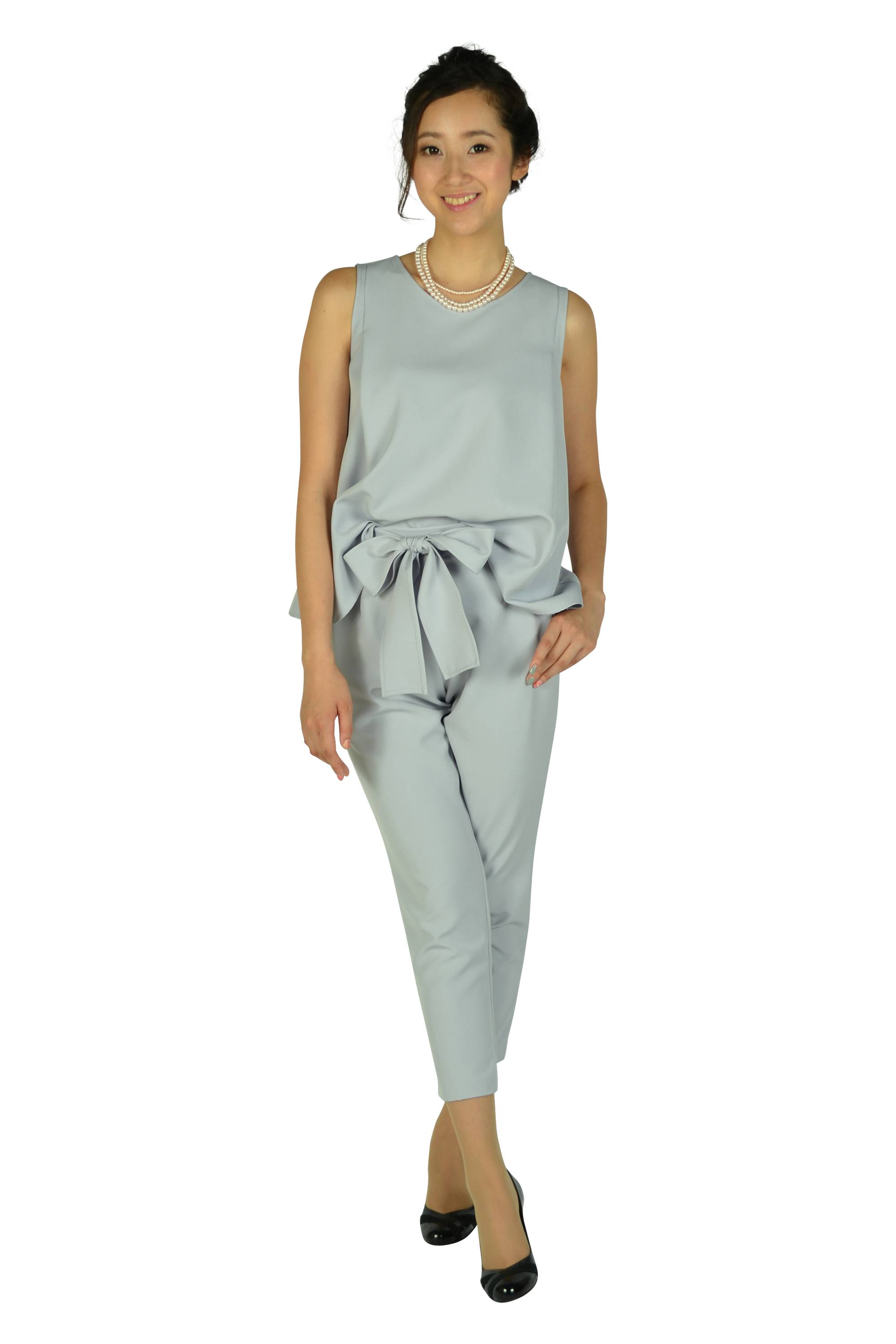 画像:グレーのパンツドレス