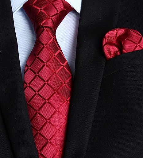参考画像:チェック&ドット柄の赤系ネクタイコーデ
