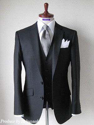 参考画像:ブラックスーツ&シルバーグレーベストコーデ