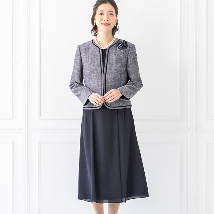 参考画像:MIXツイードジャケット&ネイビーワンピーススーツ